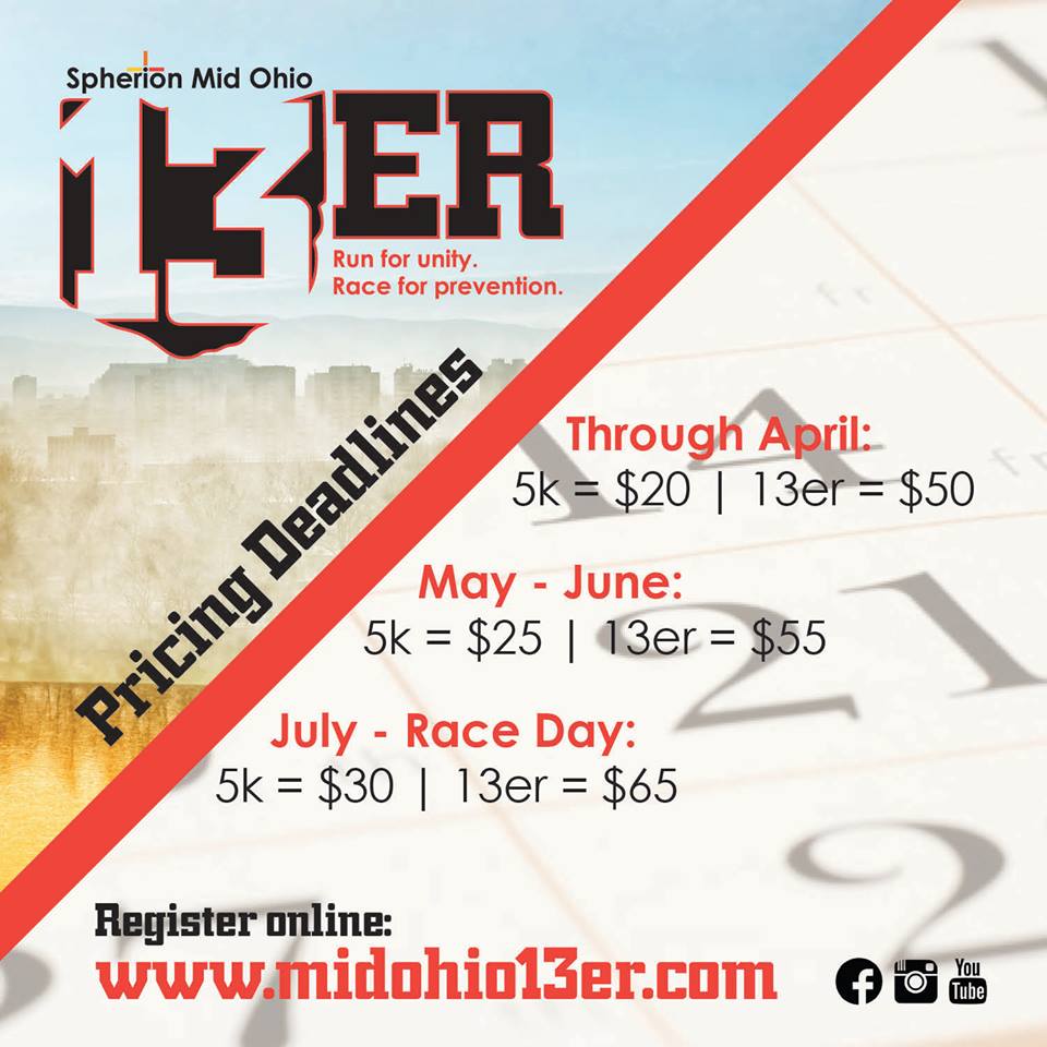 The Spherion Mid Ohio 13ER brings light to organizations that are actively involved in drug prevention locally and starts conversations for drug prevention in our communities.Developed and organized by The Drug Prevention Coalition, the purpose of the half marathon is to gather the community in prevention and support with a mission to give back to the